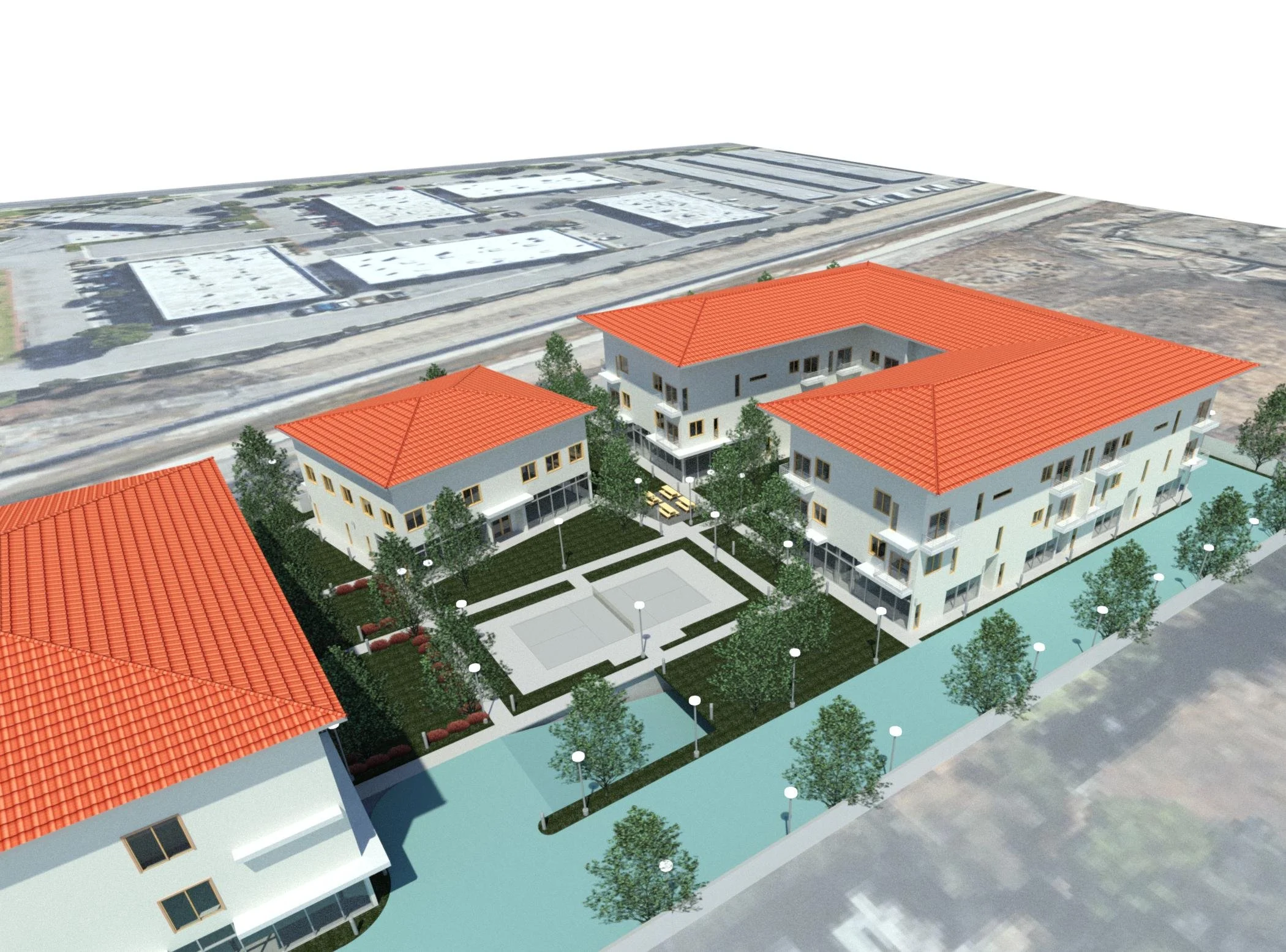 Building types range from Main Street to Fourplex and Courtyard Building per City Form-Base Zone development standards.  One level underground Parking accommodating 143 spaces for residents, tenants and visitors.  On-site fire access lane is provided within this development for emergency access.  Landscape and greenscape covers approximately 33% of entire development to provide comfortable outdoor lifestyle, daily exercise, and numerous activities.